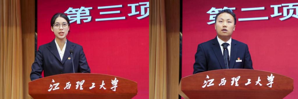 在第一次全体会议上,李佳轩代表第二十一届学生委员会做了工作报告,赵茜茜代表第十三届研究生委员会做了工作报告。大会审议并表决通过了《江西理工大学第二十一届学生会委员会工作报告》《江西理工大学第十三届研究生委员会工作报告》和《江西理工大学第二十二次学生代表大会、第十四次研究生代表大会选举办法》。
