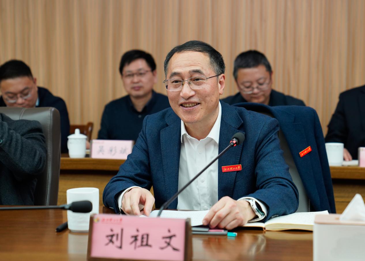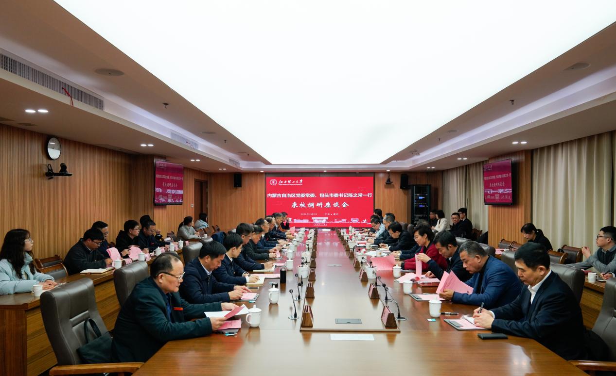 刘祖文代表学校对陈之常一行的到来表示热烈欢迎,并对包头市对学校发展的关注及支持表示感谢。他指出,2025年以来,学校紧扣高等教育发展新形势,统筹推进教育、科技、人才一体发展,锚定创建“稀土及关键矿产领域世界一流大学”目标,聚焦服务江西关键矿产万亿级产业打造、保障国家稀土产业战略高地两大需求,大力推进大部制、学部制改革,在特色学科集群打造、有组织科研强化等方面取得积极成效。他表示,希望以此次调研为契机,深化学校与包头市在政产学研用各领域的合作,推动校地、校企、校校协同发力,为国家战略实施、教育强国和科技强国建设贡献江理力量。