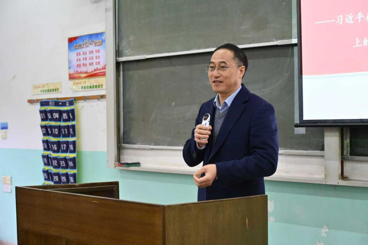 校党委副书记徐志峰在三江校区听了王邦辉老师上的《毛泽东思想和中国特色社会主义理论体系概论》课,他教导学生关注国内外形势,加强理论武装掌握透过现象看本质的本领,进一步增强爱党爱国情怀,并与授课老师进行了交流。