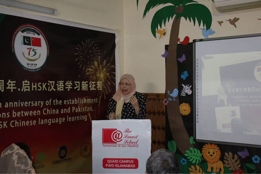 本网讯 为了推进中巴教育文化交流,献礼中巴建交75周年,3月30日,我校巴基斯坦研究中心与巴基斯坦华文教育协会联合主办的“庆祝中巴建交75周年,启HSK汉语新征程”主题活动在巴基斯坦首都伊斯兰堡举行。中巴两国教育界代表跨越山海,通过线上线下相结合的方式齐聚一堂,以语言为桥,共叙铁杆情谊,共同描绘汉语教育发展与人文交流的新图景。