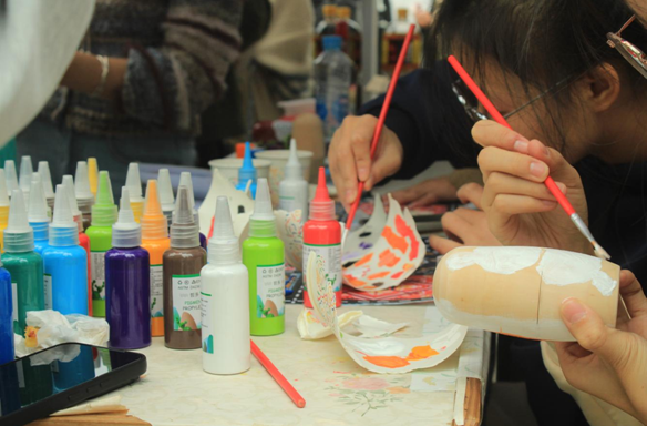 图为江西理工大学学生在画俄罗斯套娃