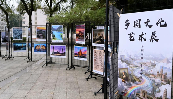 当长城与新天鹅堡同框、冬宫与卢浮宫对望,多国文化艺术展中来自九个国家的著名景点和艺术作品照片组成了“移动博物馆”,让人直观感受到世界文明的多样魅力。时而可见身着汉服或弗拉明戈裙的同学穿梭其间观展,更是成为一道流动的风景。