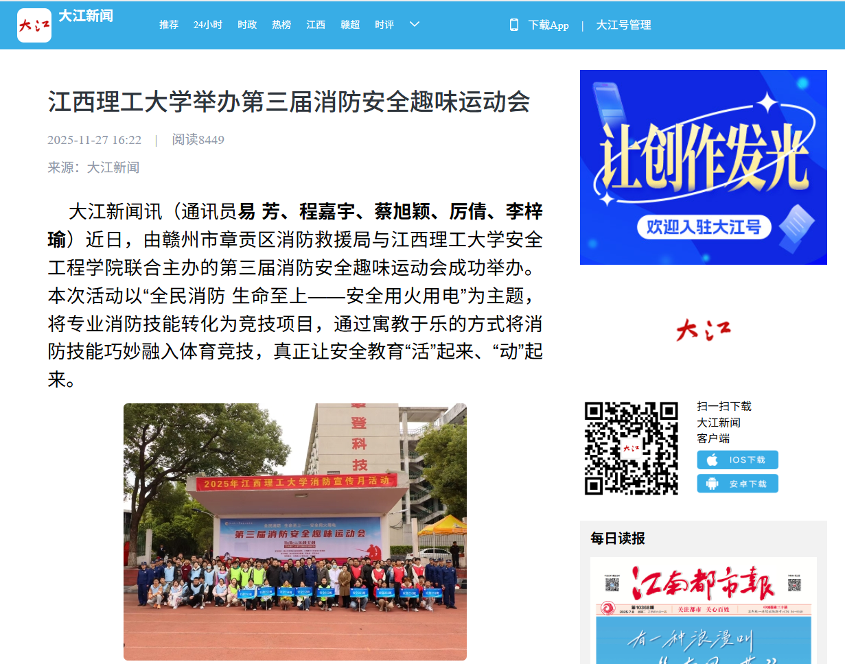 《大江新闻》:江西理工大学举办第三届消防安全趣味运动会