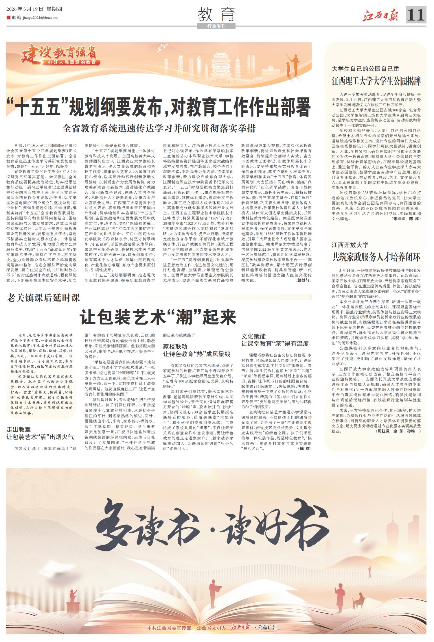 为进一步加强劳动教育,促进学生身心健康、全面发展,3月11日,江西理工大学劳动教育启动月暨大学生公园揭牌仪式在该校三江校区举行。