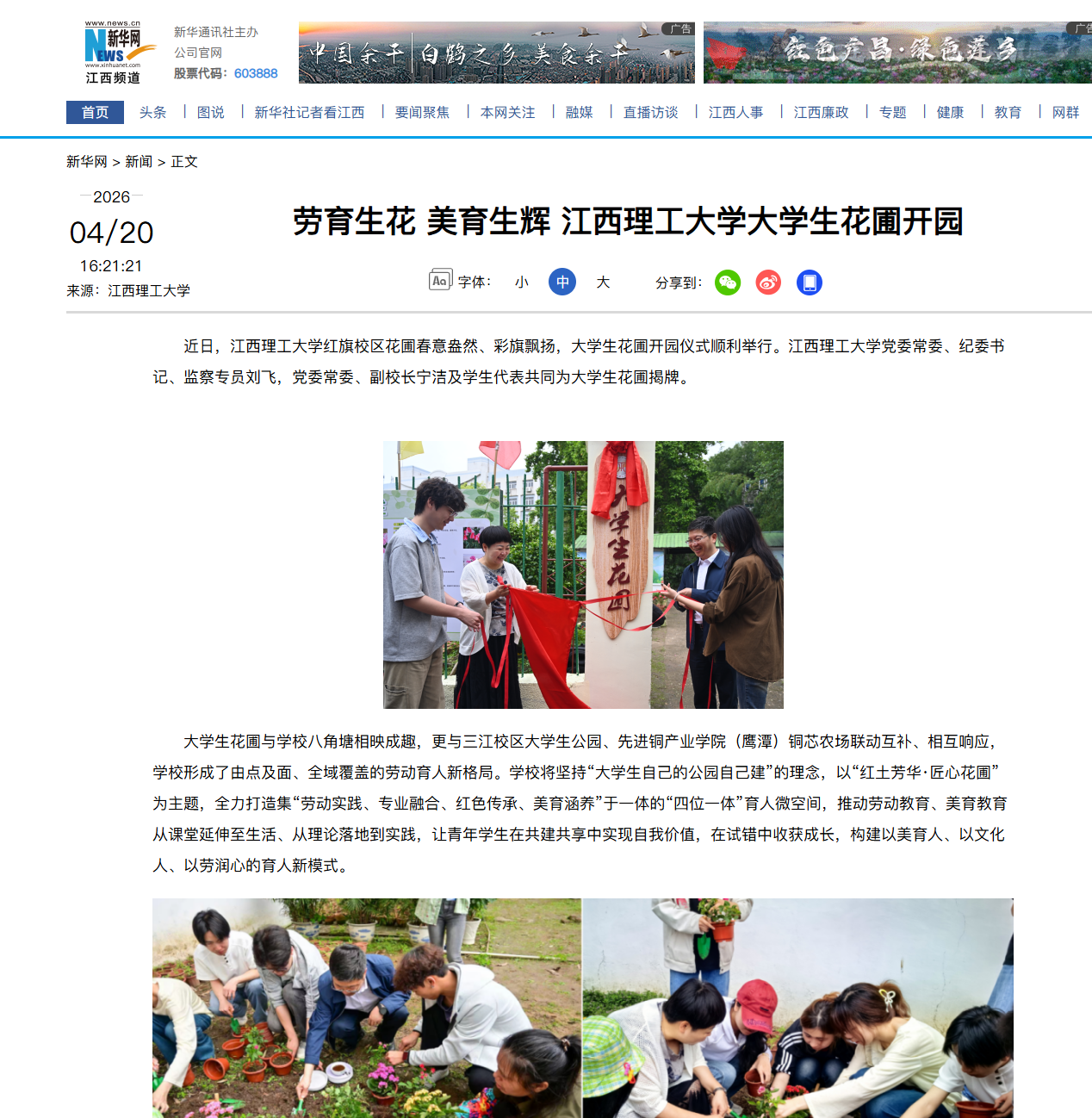 《新华网》:劳育生花 美育生辉 江西理工大学大学生花圃开园