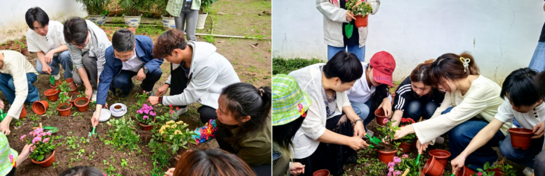 开园仪式后,专业园艺师为现场师生讲解花卉种植与养护技巧。师生们在花圃分工协作、挥锹铲土、扶苗定植、浇水养护,现场一派热火朝天的劳动景象。学生徐元凯感慨道:“亲手种下花苗的瞬间,让我真切地读懂了劳动的意义,更体会到在试错中成长、在汗水中收获的珍贵。”