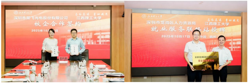 会后还举行了“就业服务联络站”授牌仪式和校企合作签约仪式。