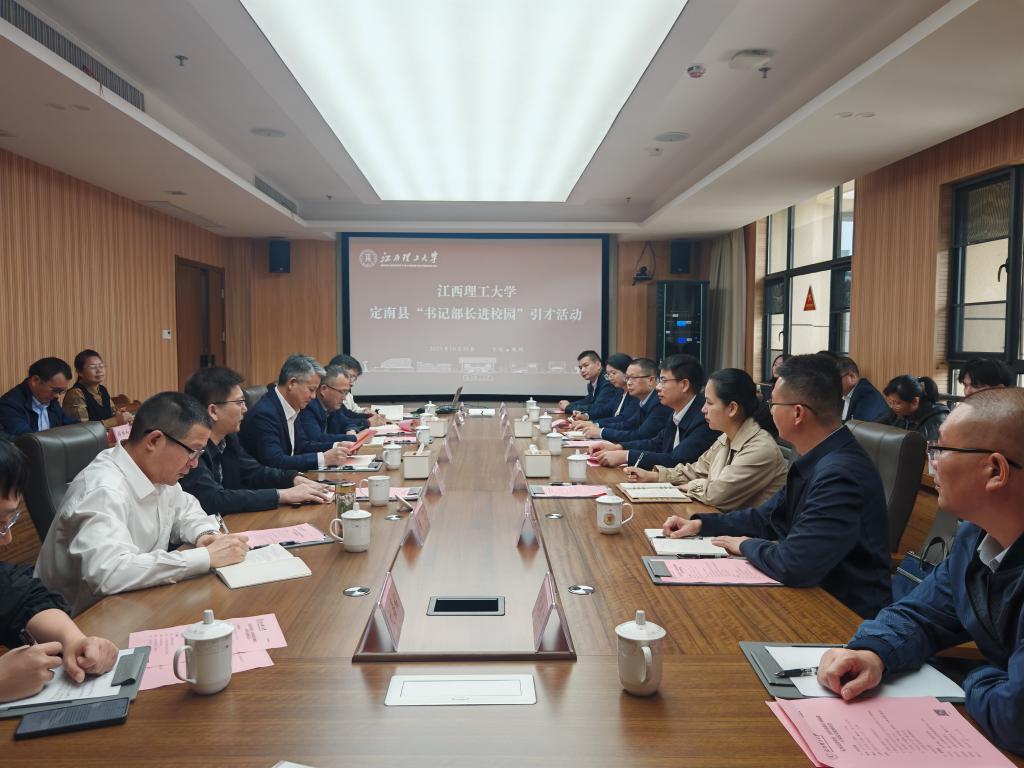 本网讯 10月29日,定南县委常委、组织部部长刘成成一行来校开展“书记部长进校园”引才活动,并在三江校区(东园)濂溪楼2号会议室举行校地合作交流座谈会。校党委常委、副校长董冰岩出席座谈会。组织部、科技处、矿业工程学院、体育与艺术学院等学院与部门负责人共同参加会议。会议由国内合作促进中心主任许洪胤主持。