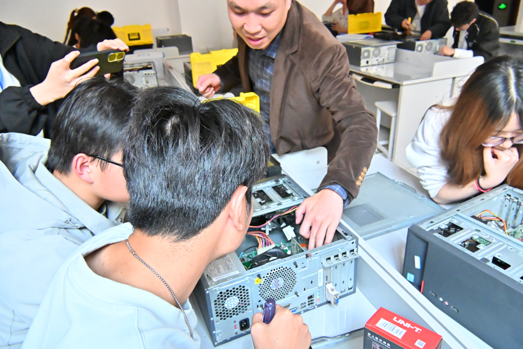 本网讯 为提升学生动手实践能力与创新素养,丰富科创实践经历,近日,信息工程学院 “大学生智创工场” 正式启动运营,面向全校学生开放电脑维修、硬件组装、科创制作、技能实训、竞赛孵化等多元服务,为同学们提供专业实操场地、齐全工具器材、优质朋辈互助平台和广阔项目竞赛舞台。 3 月 17 日,工场首期线下培训 —— 拆机实践培训在九章楼 114 教室顺利举办。活动特邀信息工程学院人工智能系刘志强老师现场指导,吸引众多学子踊跃参与。