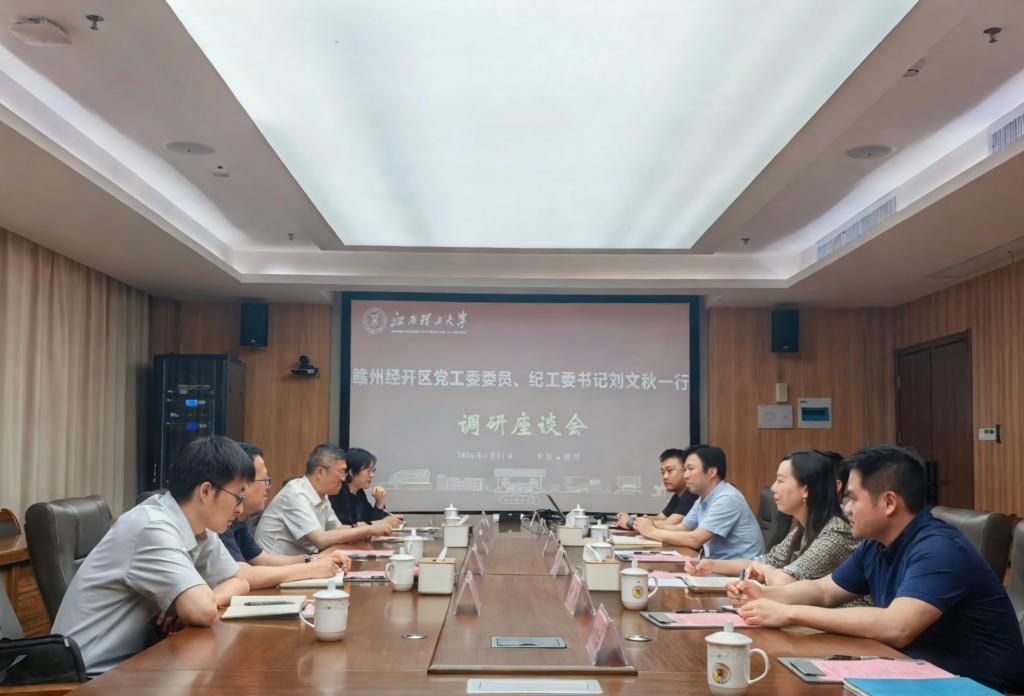 座谈会上,刘飞介绍了学校创建“稀土及关键矿产领域世界一流大学”的发展目标、“12345强本拓新计划”以及学部制大部制改革等情况,并就2026年度学校政治监督、集中治理“2+2+1”专项工作等进行了交流。刘文秋介绍了赣州经开区纪工委在机构设置、监督执纪执法、廉洁文化建设、纪检监察干部队伍建设等方面的情况及经验做法。双方纪检监察干部围绕政治监督、案件查办、“三化”建设年行动、加强校地合作等工作开展交流研讨。